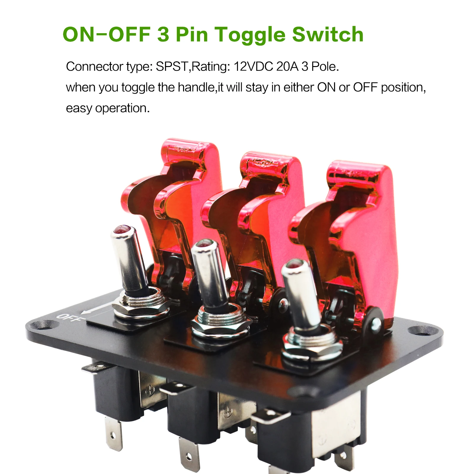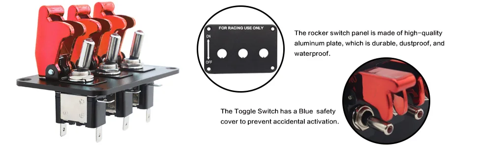 Q: What sets the Amomd 12V Carbon Fiber Racing Car Rocker Switch Panel apart from others? A: This switch panel combines Unmatched Racing Style with Durability, featuring a Carbon Fiber design and Red LED Indicator for a high-performance look in your car, RV, boat, or marine vessel. It's made from ABS Anti-UV Raw Material, ensuring it withstands sunlight exposure and maintains its appearance. Q: What is the switch's maximum voltage and current capacity? A: The switch is designed for DC12V systems and can handle a Maximum Current of 20A, making it suitable for powering various automotive accessories and equipment. Q: What is the IP level of the switch, and how does it protect against environmental factors? A: The switch has an IP65 Protection Level, meaning it is dust-tight and resistant to water jets from any direction. This makes it resilient in outdoor and marine environments, protecting against moisture and debris. Q: How many times can the switch be actuated before reaching its mechanical life limit? A: The switch boasts a Mechanical Life of 50,000 cycles, ensuring reliable performance for years of repeated ON-OFF operations. Q: What material is used for the panel, and how does it contribute to the product's aesthetics? A: The panel material is an Aluminum Plate, which not only provides a sturdy base for mounting but also adds a sleek, racing-inspired touch to your vehicle's interior. Q: Can you explain the mounting hole size and compatibility for installation? A: The Mounting Hole Size is specified as 1.2mm diameter, ensuring a precise fit for standard switch panel configurations in cars, RVs, boats, and marine vessels. Q: Does this rocker switch have smart functionalities or is it manually controlled? A: This switch is Non-Smart and operates manually with a simple ON-OFF function, prioritizing ease of use and compatibility with a wide range of vehicle systems. Q: How does the ABS anti-UV raw material contribute to the product's longevity? A: The use of ABS Anti-UV Raw Material is crucial for longevity, as it prevents degradation from sunlight exposure, ensuring the switch maintains its structural integrity and color over time, even in direct sunlight. Q: What types of vehicles is this rocker switch suitable for? A: This versatile switch panel is designed for Car, RV, Boat, Marine Ship, and other similar applications, covering a broad range of vehicular and nautical installations.