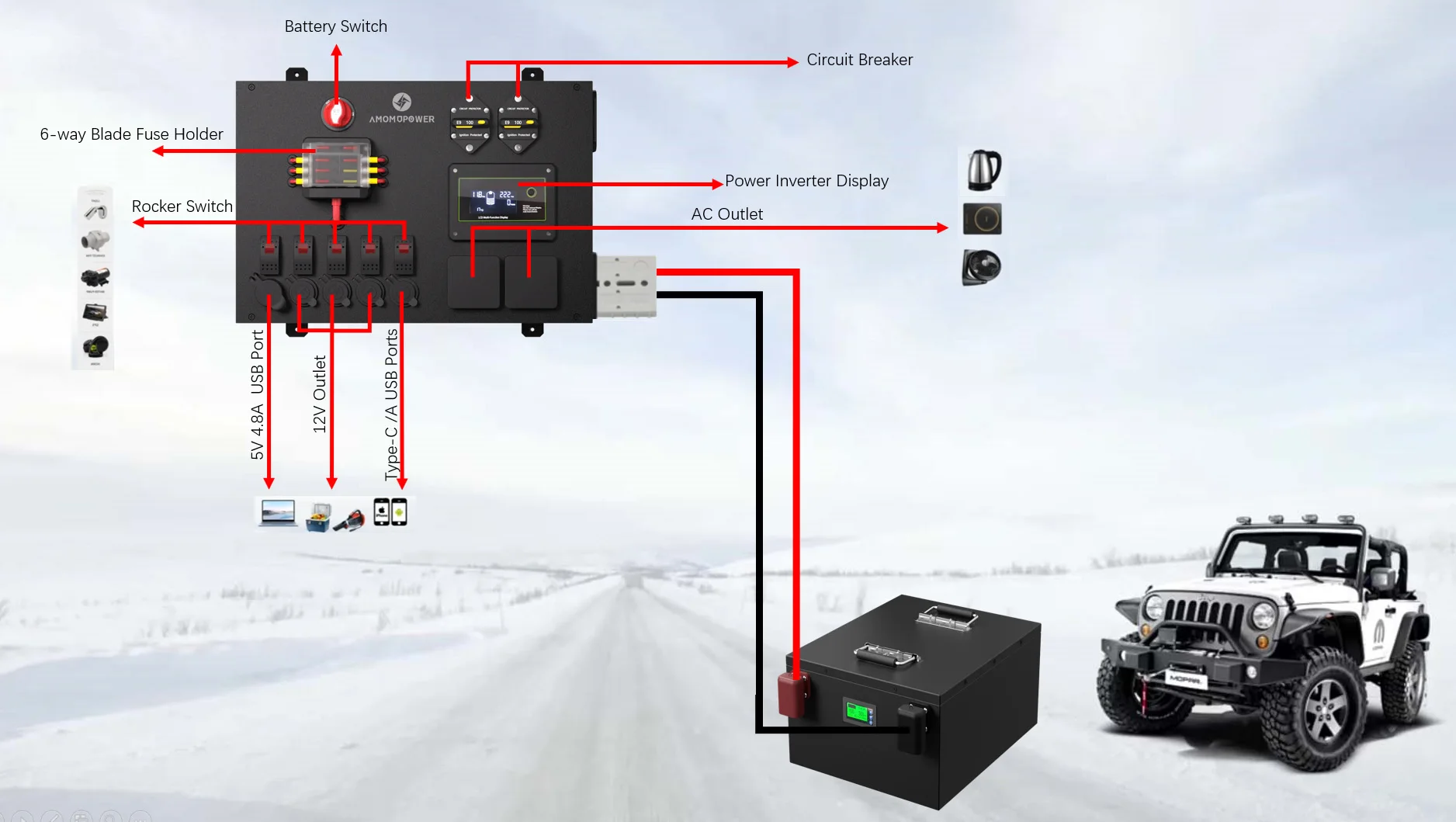 | Product Name | Amomd Power 12v System Control Box with 1000W Inverter |